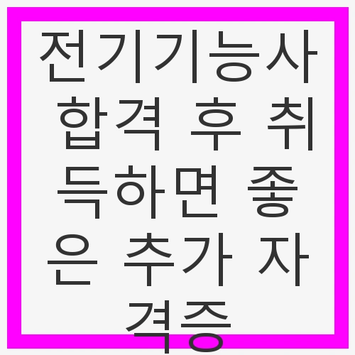 이 외에도, 추가 자격증은 인사 평가나 승진 기회에서도 긍정적인 영향을 줄 수 있습니다. 따라서 전기기능사 자격증을 취득한 후에는 다양한 추가 자격증을 고려하여 자기 개발에 투자하는 것이 중요합니다.